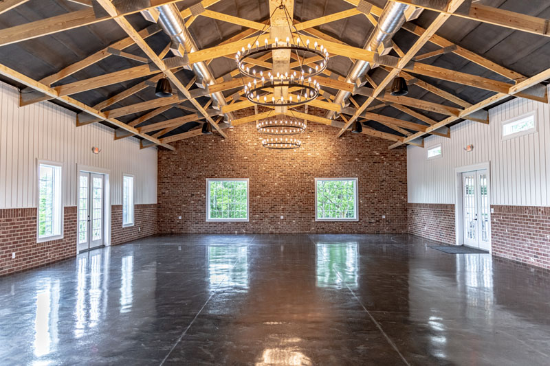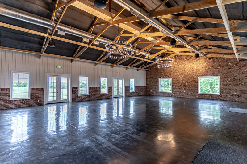 The Silo Event Barn holds over 4,100 sqft of event space. The Event Barn is a 52ft by 80ft white steel building with black windows. The venue will have bride & grooms dressing suites which will allow you to prepare for your big day. The bridal suite accommodations include a private restroom, vanities, mirrors and much more. There are also handicap accessible public restrooms and a catering preparation room to go along with the main event hall.